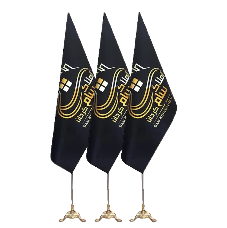 پرچم تشریفات در دو نوع پارچه ای و لمینت ارایه می شود . و در طرح ریشه دار و لیزری می باشد ، در دو نوع پایه ی خورشیدی و پنجه شیری ارایه می شود